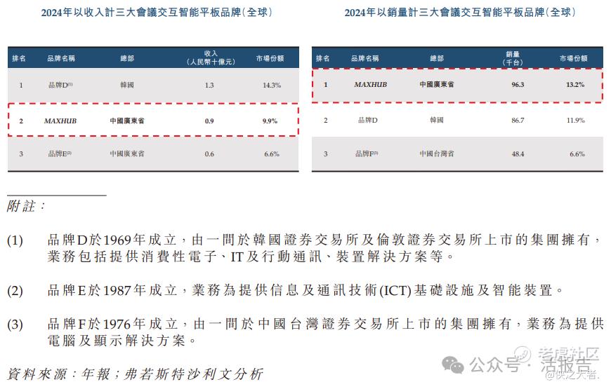 2024年,按会议交互智能平板营业收入计,公司品牌MAXHUB以9.9%的市场份额位居全球第二,中国内地的市场份额达25.0%;按会议交互智能平板销量计,公司品牌MAXHUB以13.2%的市场份额位居全球第一,中国内地的市场份额达29.4%。
