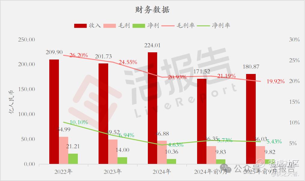收入分别约为人民币209.90亿、201.73亿、224.01亿、171.52亿、180.87亿,2025年前9月同比+5.45%;