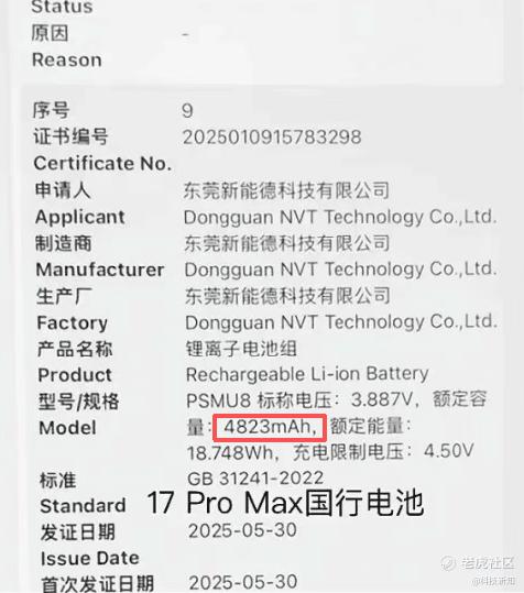 一个显然的现象是:当前头部手机品牌的高端机型,并没有安装超大电池。以荣耀来说,尽管Power机型的电池容量已经达到了8000mAh,但其10月份发布的Magic8系列,仍搭载7000/7200mAh的电池。而iPhone17Promax国行版的电池容量,则仅仅只有4823mAh。