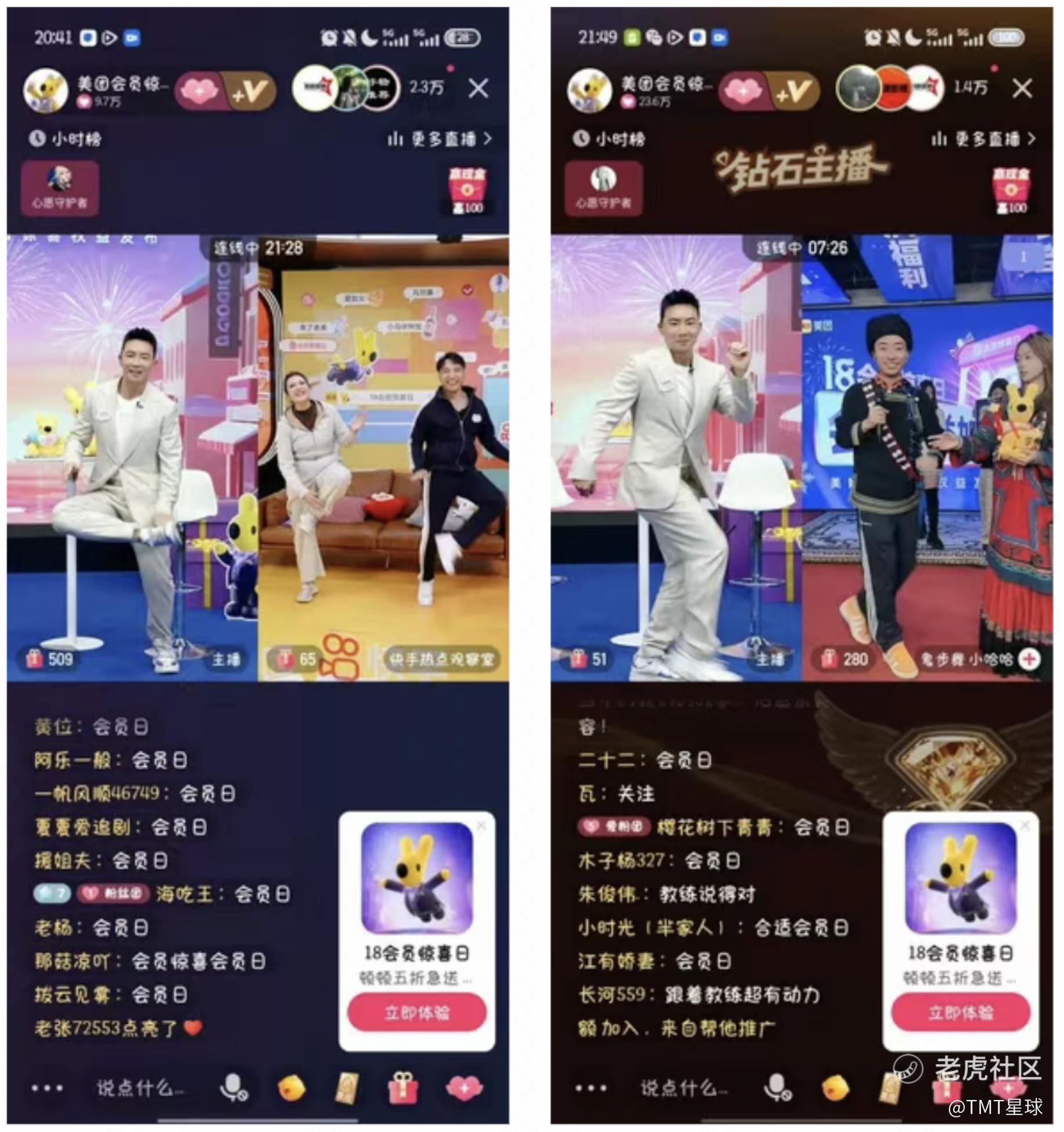 内容场的维度也没有止步于怀旧,通过多元达人连麦,实现了关键的场景拓展。美团18会员惊喜日在快手直播间巧妙地串联起滑雪达人铁豆、旅行达人陈一娜、舞蹈达人小哈哈等来自不同垂类的代表性创作者。他们在和刘畊宏直播连麦中接连登场,自然地将话题从过去的网络记忆转向当下的具体生活。