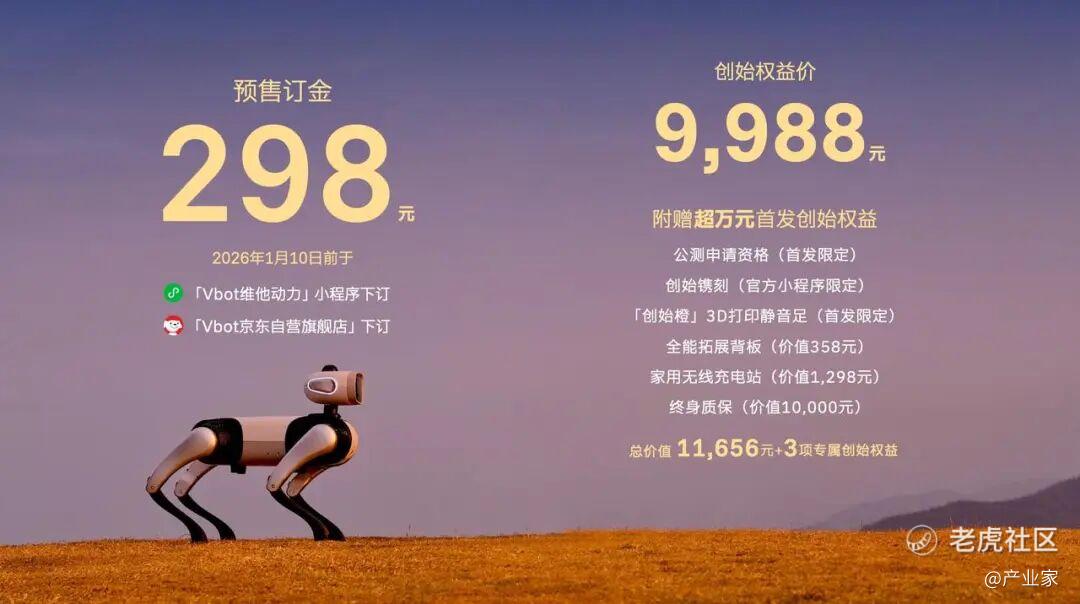 回想一下,早期的四足机器人,即便是一台性能平平的样机,售价也普遍在8万到10万之间。那不是卖给消费者的,那是卖给高校实验室或者电力巡检公司的。而Vbot维他动力创始权益价直接下探到了9988元,直接拆除了大众消费的门槛。