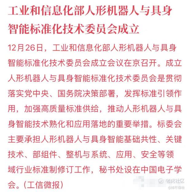 这周未中方又出了一个人形机器人政C,深圳”十五五”规划建议:推动具身智能规模化的应用,而且还成立了技术委员会,港A两地的机器人概念股也应声大涨,而在20多天前的12月4号,美国才刚宣布2026年要ALL IN机器人,准备在2026年出台行政令。而中方在元旦前就已经出台了相关政策,这么一比中方的速度已经不是当年被掐脖子的速度了,而这种情况不只是机器人,还有最近大热的商业航天。
