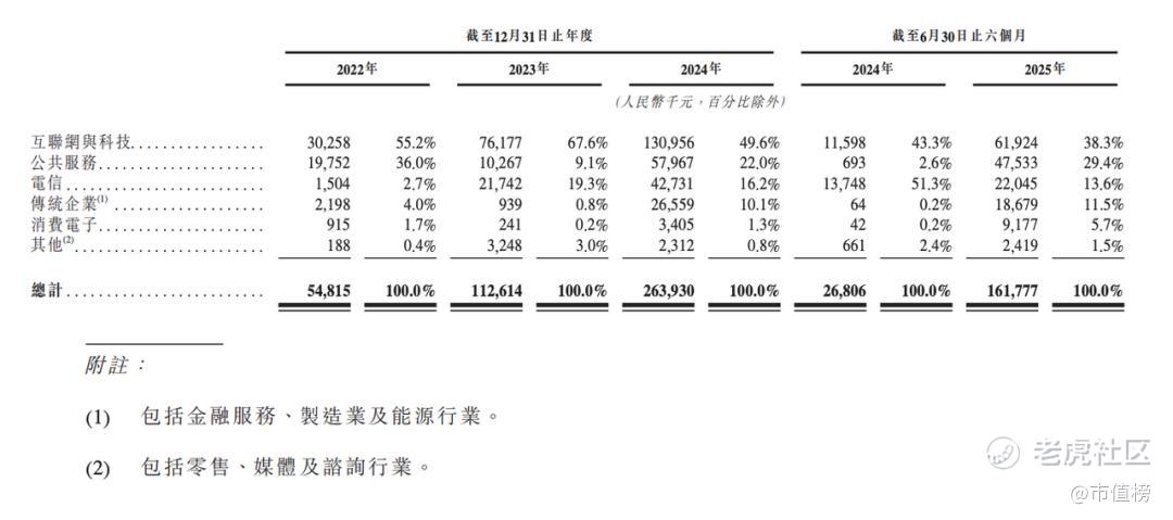 其高度依赖大客户,包括互联网与科技企业、公共服务部门等。目前机构客户数目由2022年的48家增至截至2025年6月30日止六个月的3156家。其中,最大客户收入超过总收入10%,前五大客户收入占营收始终超过40%。