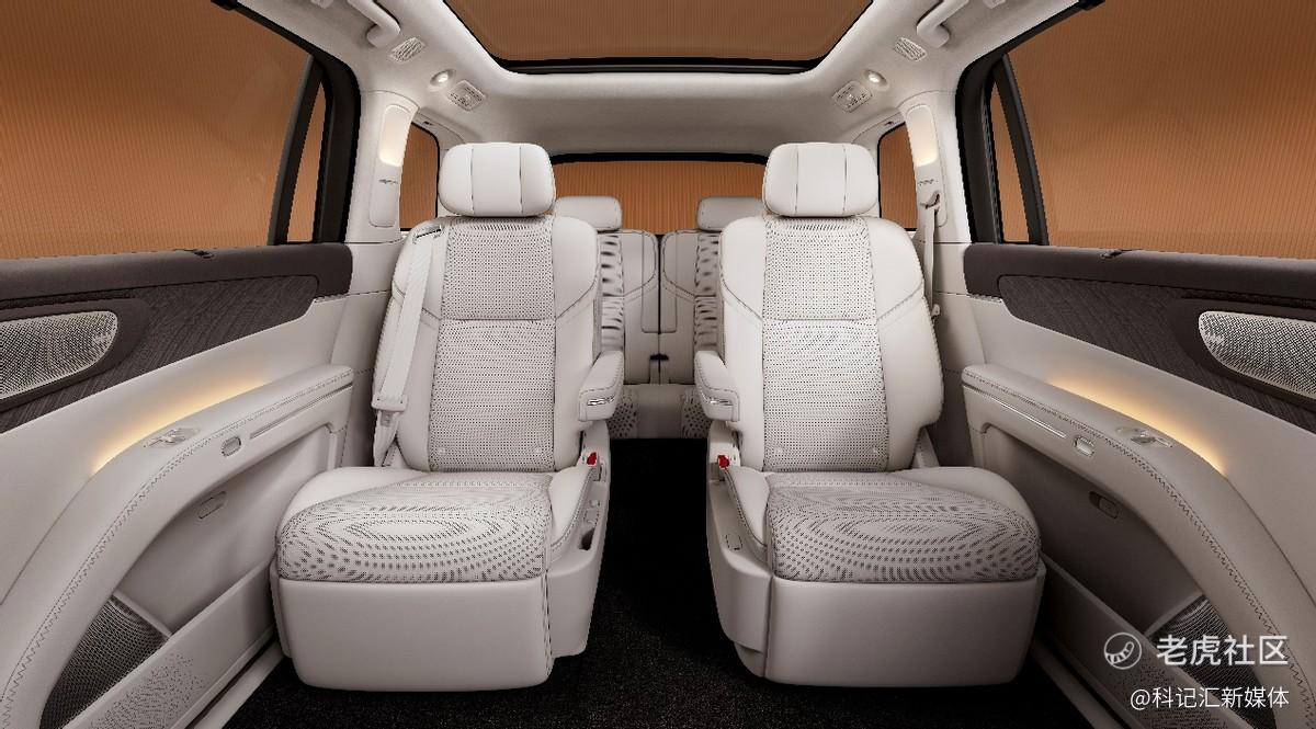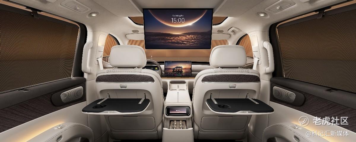 座椅配置堪称“移动头等舱”,采用百万级豪车同源的半苯胺头层真皮材质,高定V形绗缝、大师级辊边与奢侈品手包为灵感的珍珠打孔工艺,兼顾视觉美感与体感舒适。座椅拥有12层奢享级结构设计,配备加热、电动调节功能,前两排更搭载吸风式通风与10点式SPA级气动按摩。二排120°真零重力座椅支持坐垫15°抬升与4向超大行程腿托,搭配ABTS一体式安全带,带来全身承托的悬浮休憩体验。第三排支持131°无级电动调节并首搭双扶手,配合EZE便捷进出系统,让每一排都能享受平等的豪华待遇。