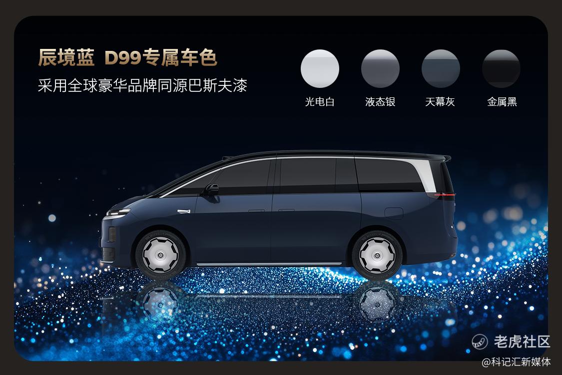 在色彩设计上,零跑D99坚持“自然共生”理念,雕琢出五款意境悠远的豪华外观色,赋予车辆独特的视觉灵魂。其中,“辰境蓝”为零跑D99的专属色,静止时呈现沉稳克制的绅士气质,驰骋在阳光下则会唤醒细腻珠光,折射出年轻灵动的气息。为呈现这种高级质感,零跑选用顶级豪华品牌同款的巴斯夫车漆,让颜色更通透、层次更丰富,且光泽持久不易失色。此外,光电白的纯粹冷峻、液态银的温暖优雅、天幕灰的深邃莫测与金属黑的低调不凡,五款自然灵感色分别对应不同的审美志趣,让每一台零跑D99都能成为用户个性与气质的延伸。
