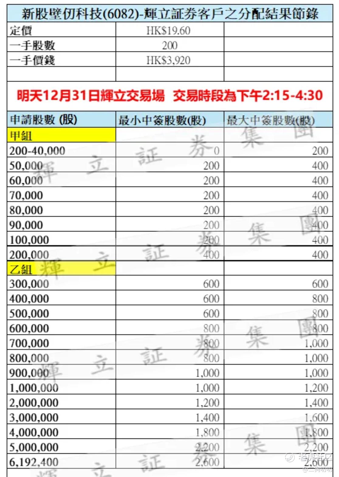 今天下午 $壁仞科技(06082)$ 中签结果出来,申购250手稳中1手,甲尾2手,乙头稳中3手,,二狗哥三个账户全部干了,都中了,等着明天吃肉。。。