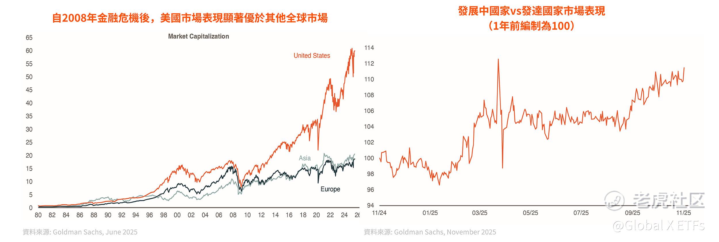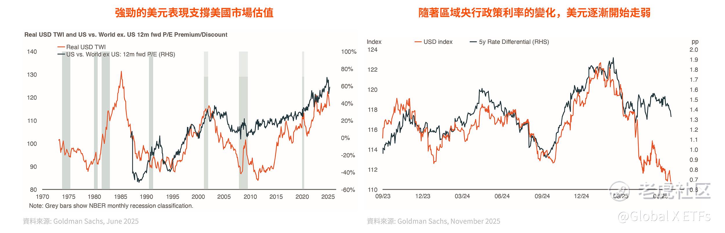 – 自 2025 年初以来,非美经济体的韧性表现,加上美国不断扩大的财政赤字和政策不确定性的增加,共同抬升了美元的风险溢价。这导致美元贬值,对于以美元为基础的投资者而言,非美股票变得更具吸引力,从而成为驱动资金进行多元化配置的另一个因素。