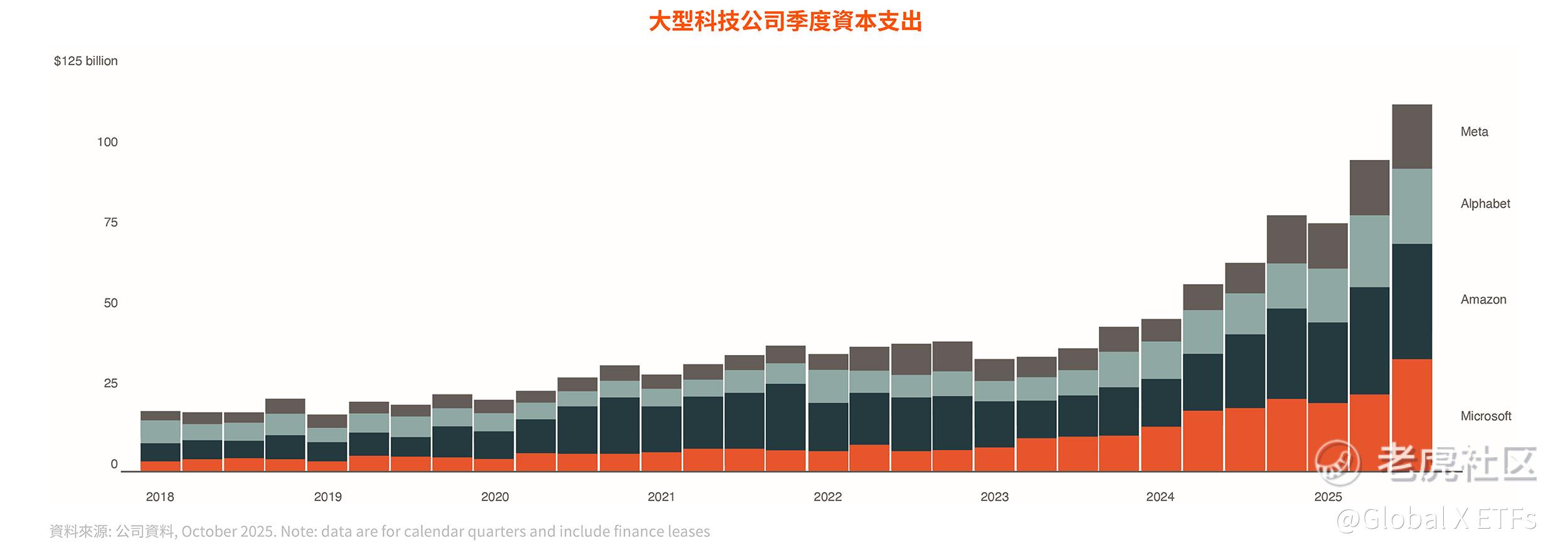 – AI 支出趋势强劲:由于人工智慧基础设施需求持续超过供给,四大超大规模云服务提供者在 2025 年第三季度的 AI 资本支出已超过 1000 亿美元。