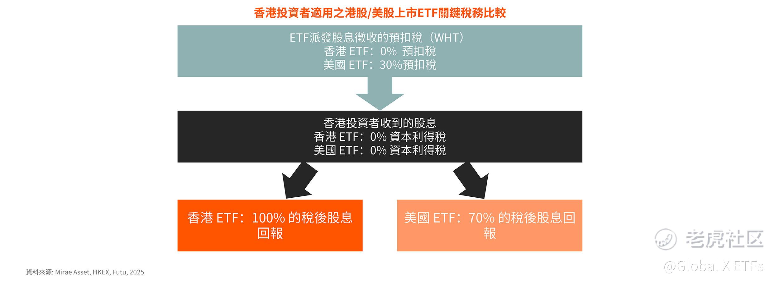 – 作为非美国税务居民,香港投资者通常须就美国 ETF 派发的现金股息缴纳 30% 的美国预扣税(WHT)。虽然可透过特定程式及申请申索此税款,但相关流程往往相当复杂。