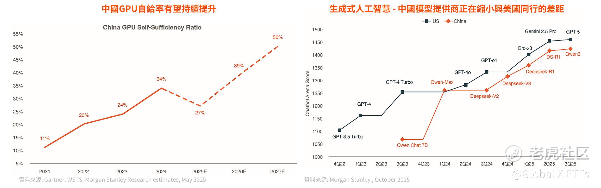 – 中国在这方面正在取得进展。持续的美国晶片禁令和强劲的中国人工智慧需求推动了自给率的上升。此外,中国在稀土领域的主导地位也为其带来了强大的对美国的议价能力。