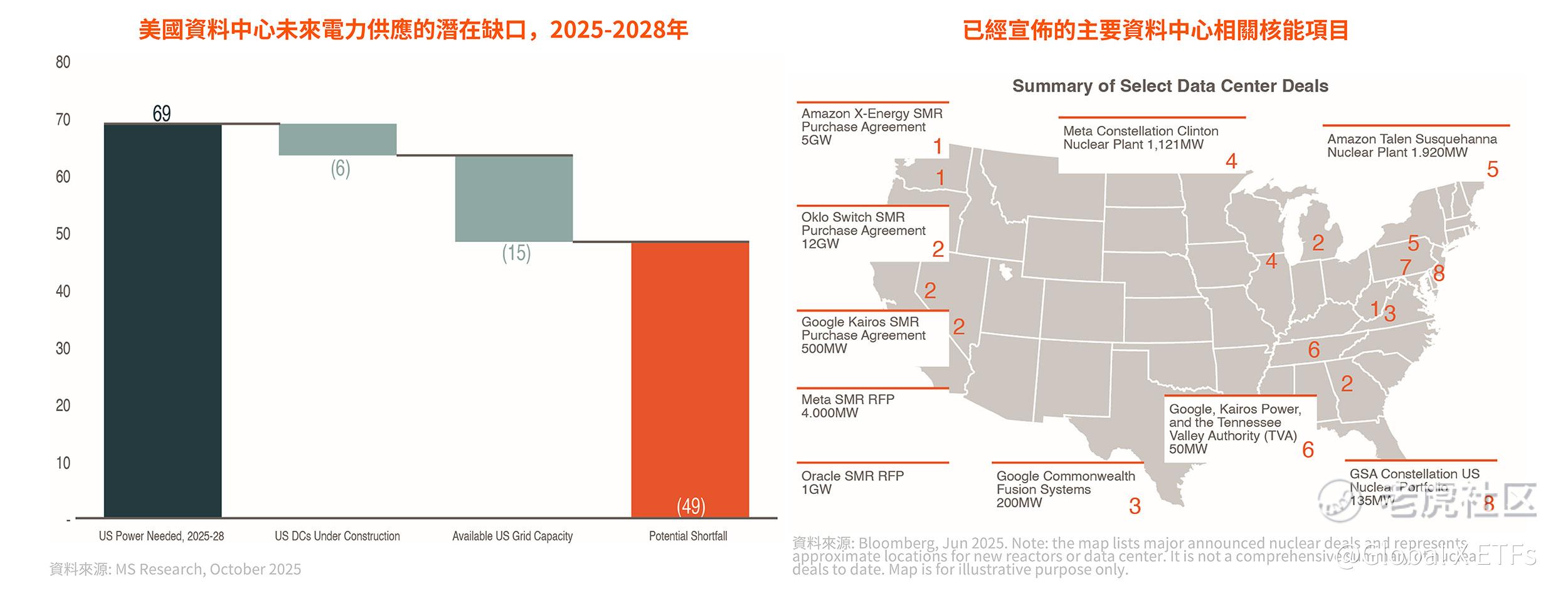 – MS 预计到 2028 年,美国电力发电能力将出现 49GW 的短缺,这主要是由资料中心需求所致。
