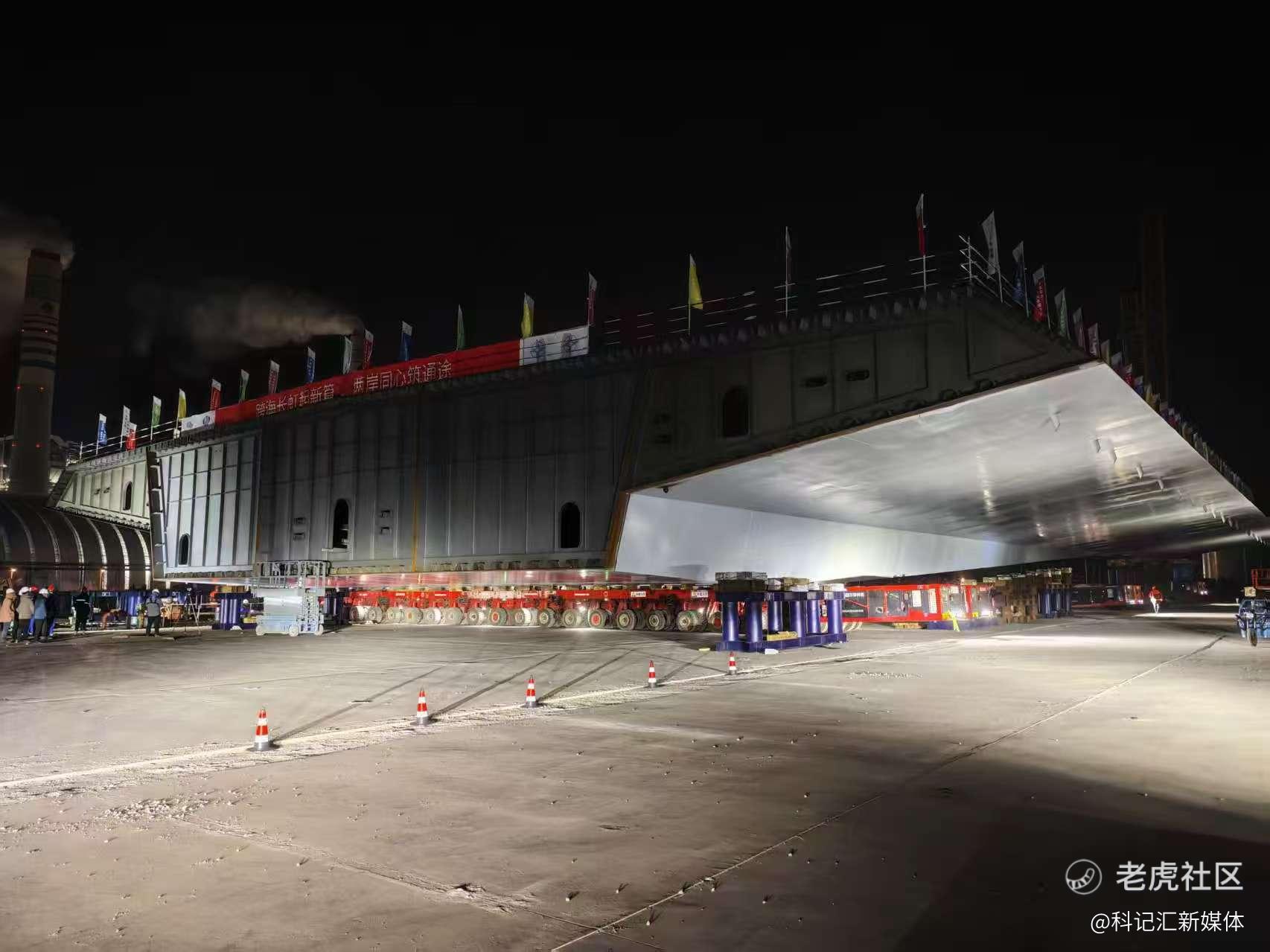如此庞大体量的大节段进行滚装作业,对模块车组的操控精度、船舶与码头及滚装通道的衔接适配性、船舶动态调载能力以及潮汐窗口期的选择均提出严苛要求。作业过程中,模块车组的行进、船舶的动态调载需高度协同,与涨潮速率精准匹配,确保在有限的涨潮窗口期内完成滚装上船。
