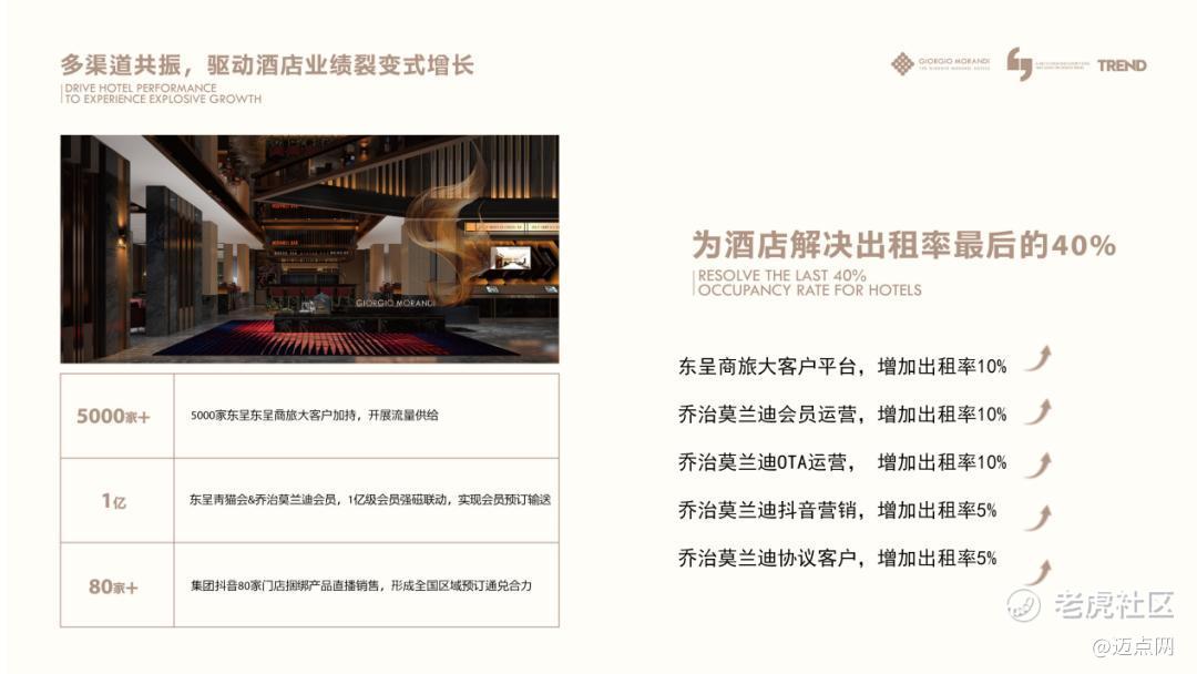 迈点发现,乔治莫兰迪靠的就是这种“会员+TMC+抖音+OTA+协议”的多元结构,解决了出租率最后的40%。不仅效率高,而且抗风险能力也很高,这在流量越来越贵的当下是个相当有智慧的方案。