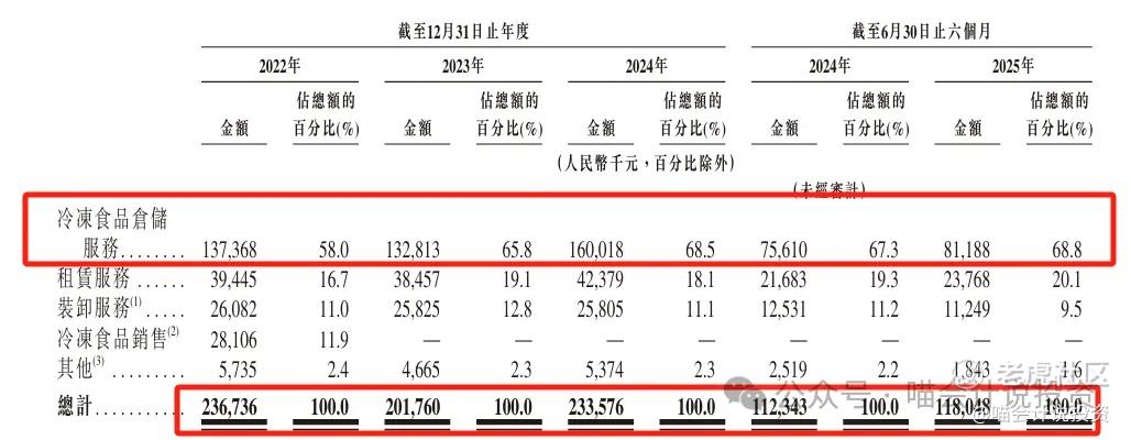 红星冷链向冷冻食品批发商及零售商提供冷冻食品库容及相关仓库管理服务,包括货物分拣、分类及包装、存货盘点及追踪、进出库记录,以及消防安全及环境风险管理等,公司收取冷冻食品仓储服务费。公司于长沙的自营食品冻库为冷冻食品批发商及零售商提供两处基地,总设计库容超过一百万立方米(即可用库容逾230,000吨),往绩记录期间利用率超过88.0%,截至2025年6月30日已为逾700位客户提供服务。