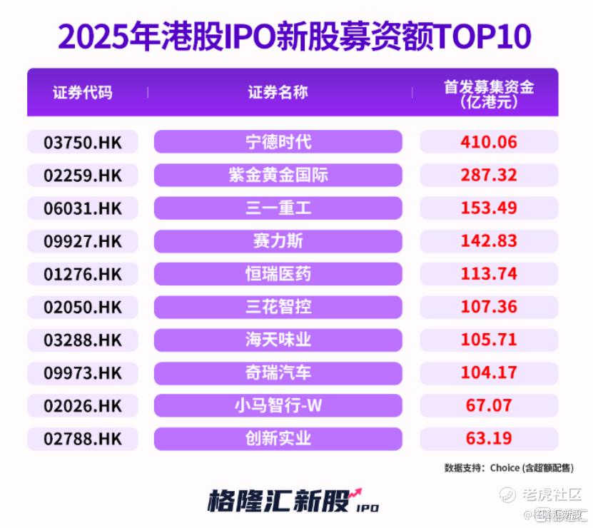 2025年全球首发募资前10的新股里面,有四家为港交所新股,分别为宁德时代、紫金黄金国际、三一重工、赛力斯。