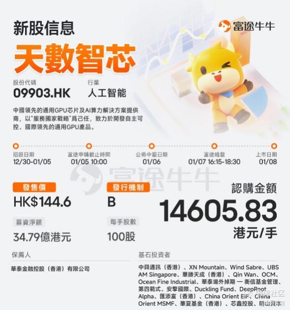 天数智芯IPO打新启动,2026年百万股民紧盯的GPU“大肉签”来了