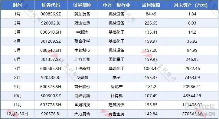 12月:天力复合,月度涨幅142.84%