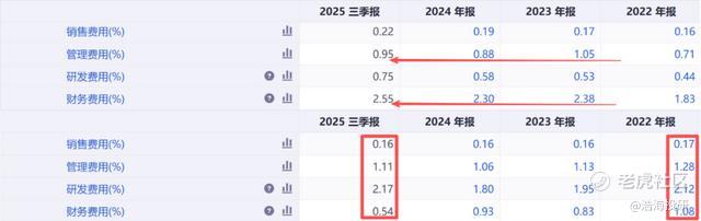 问题出在哪儿?首先是收入萎缩与成本刚性的矛盾。在PTA与PX价差持续收窄、涤纶库存高企的背景下,恒逸的炼化与聚酯板块难以放量提价,营收自然下滑。但与此同时,其四项费用率不降反升,财务费用因文莱项目贷款利息支出维持高位,管理费用随海外运营复杂度增加而上升,导致整体费用刚性凸显。当蛋糕变小,固定开支却没减少,利润空间就被进一步挤压。