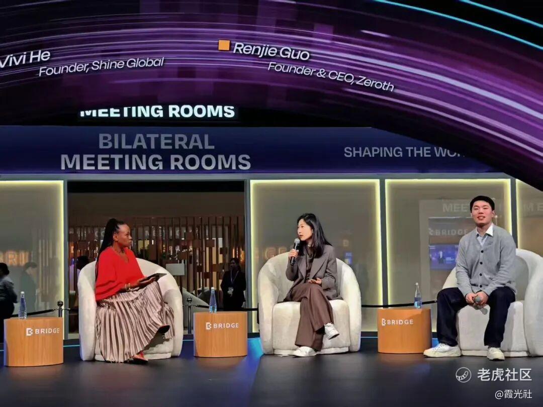 创始人何维(中)同非洲世界媒体创始人图米・马卡博(左)与乐享科技创始人郭人杰(右)在BRIDGE Summit 对谈