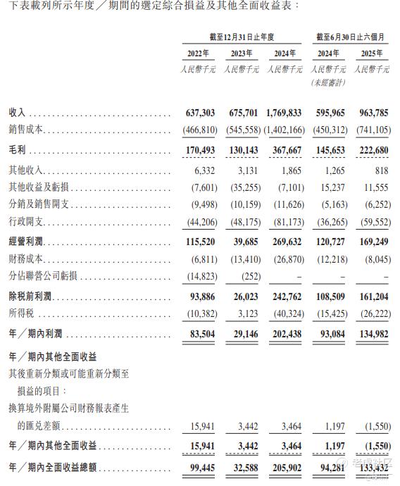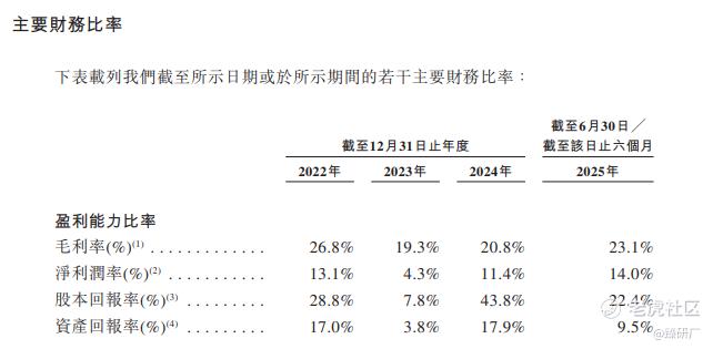 从2022年至2025年上半年,公司的毛利分别为1.71亿元、1.30亿元、3.68亿元及2.23亿元,毛利率分别为26.8%、19.3%、20.8%及23.1%;其中铜精矿生产加工业务在2023年及2024年均录得毛利亏损,主要是2023年原材料供应减少致使铜精矿产量下降,推高了单位固定成本,叠加同期累计折旧等单位固定成本持续上升共同导致。公司利润及净利润率逐渐改善,2022年至2023年,年内利润由0.84亿元减少65.1%至0.29亿元,净利率也从13.1%降至4.3%,主要是公司毛利减少及2023年汇兑亏损增加所致;2023年至2024年,年内利润显著增至2.02亿元,净利率从4.3%提升至11.4%,核心源于扩大刚果(金)铜冶炼厂产量带动收入增长及毛利率改善;截至2025年上半年,期内利润2024年上半年的0.93亿元增至1.35亿元,净利率进一步提升至14.0%,主要得益于公司产能提升推动收入大幅增加。