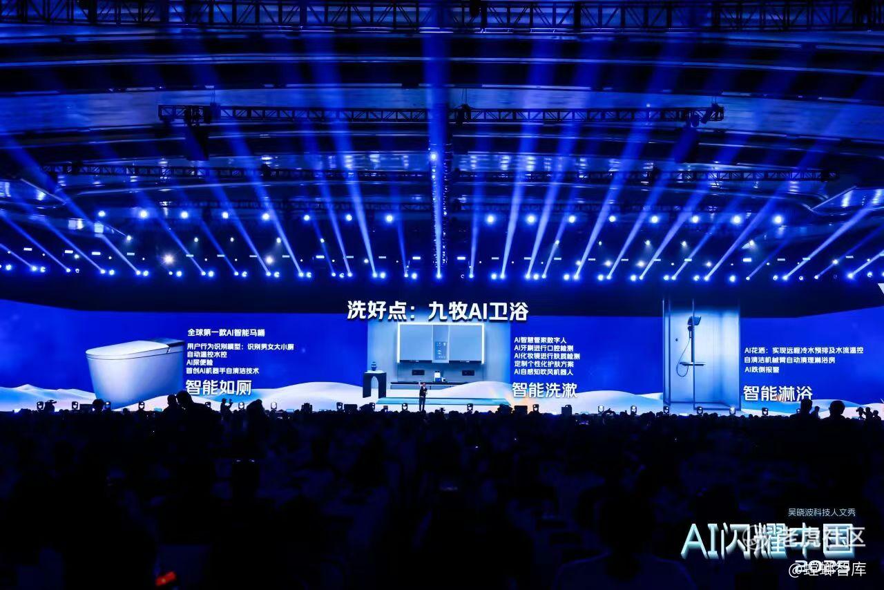 ▲吴晓波在“AI闪耀中国”2025介绍九牧AI卫浴