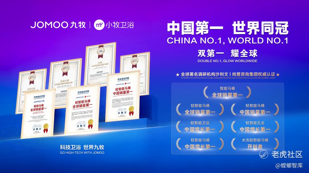 就比如被吴晓波提到的九牧,早两天全球著名调研机构沙利文和尚普咨询同步发布了九牧智能马桶全球销量第一,九牧小牧轻智能马桶中国销量第一、全球销量第一,九牧小牧轻智能卫浴中国增长第一,轻智能马桶中国增长第一,轻智能五金中国增长第一等多项权威市场地位认证。