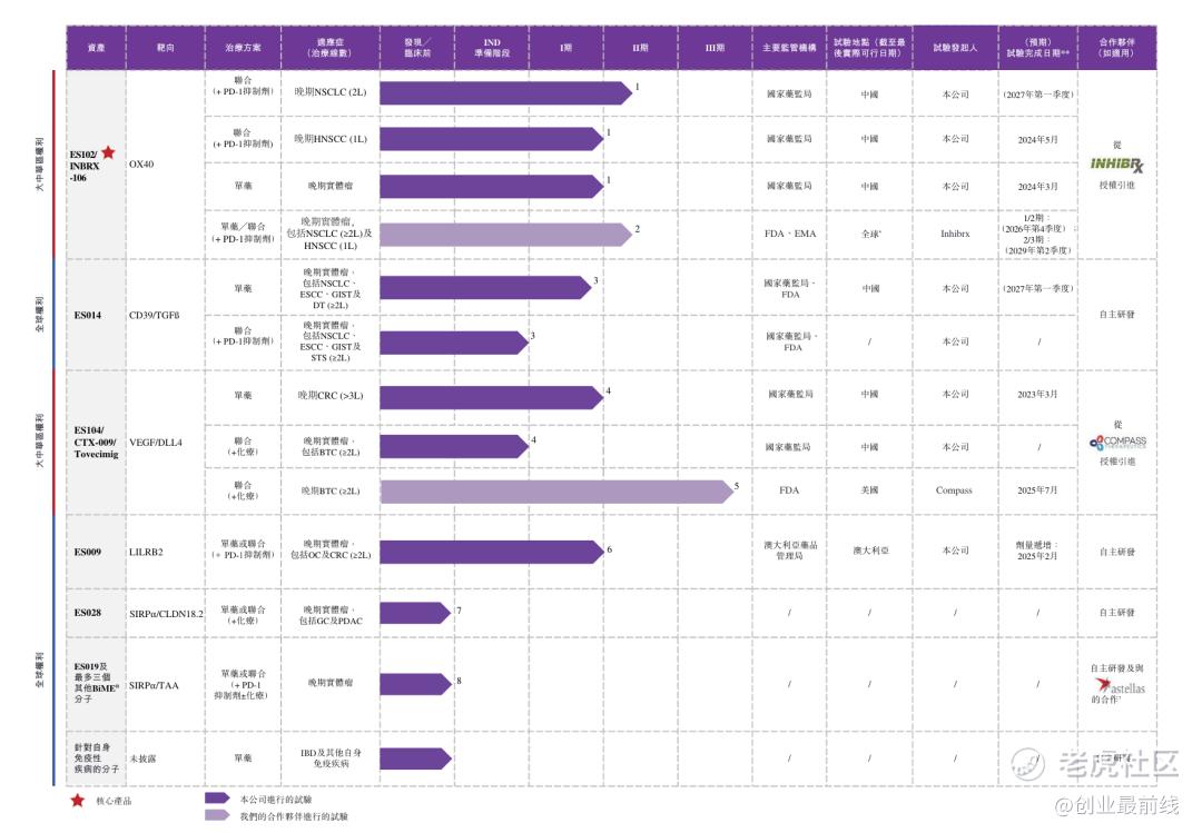 公司先后于2018年、2021年从美国Inhibrx、Compass公司,分别获得ES102、ES104的大中华区独家开发及商业化权益,这两款产品成为公司核心的临床阶段产品。