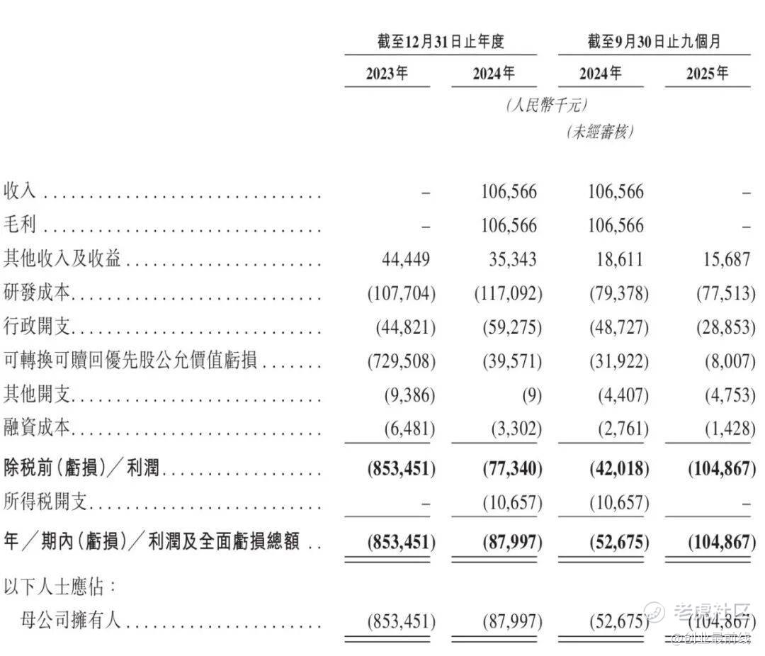 2023年、2024年及2025年前三季度,公司分别录得净亏损8.53亿元、8799.7万元和1.05亿元,尽管亏损规模整体有所收窄,但仍处于高位。