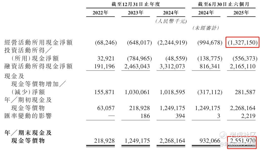 截至2025年6月30日,公司经营活动现金流为人民币-13.27亿元,期末现金约为25.52亿元。
