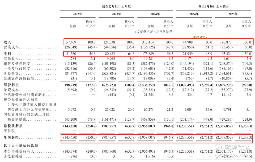 公司过去两年收入与毛利实现大幅增长;净利润方面,从2023年净亏损7.88亿元,扩大至2024年净亏损29.58亿元,主要因研发及市场拓展相关开支增加。