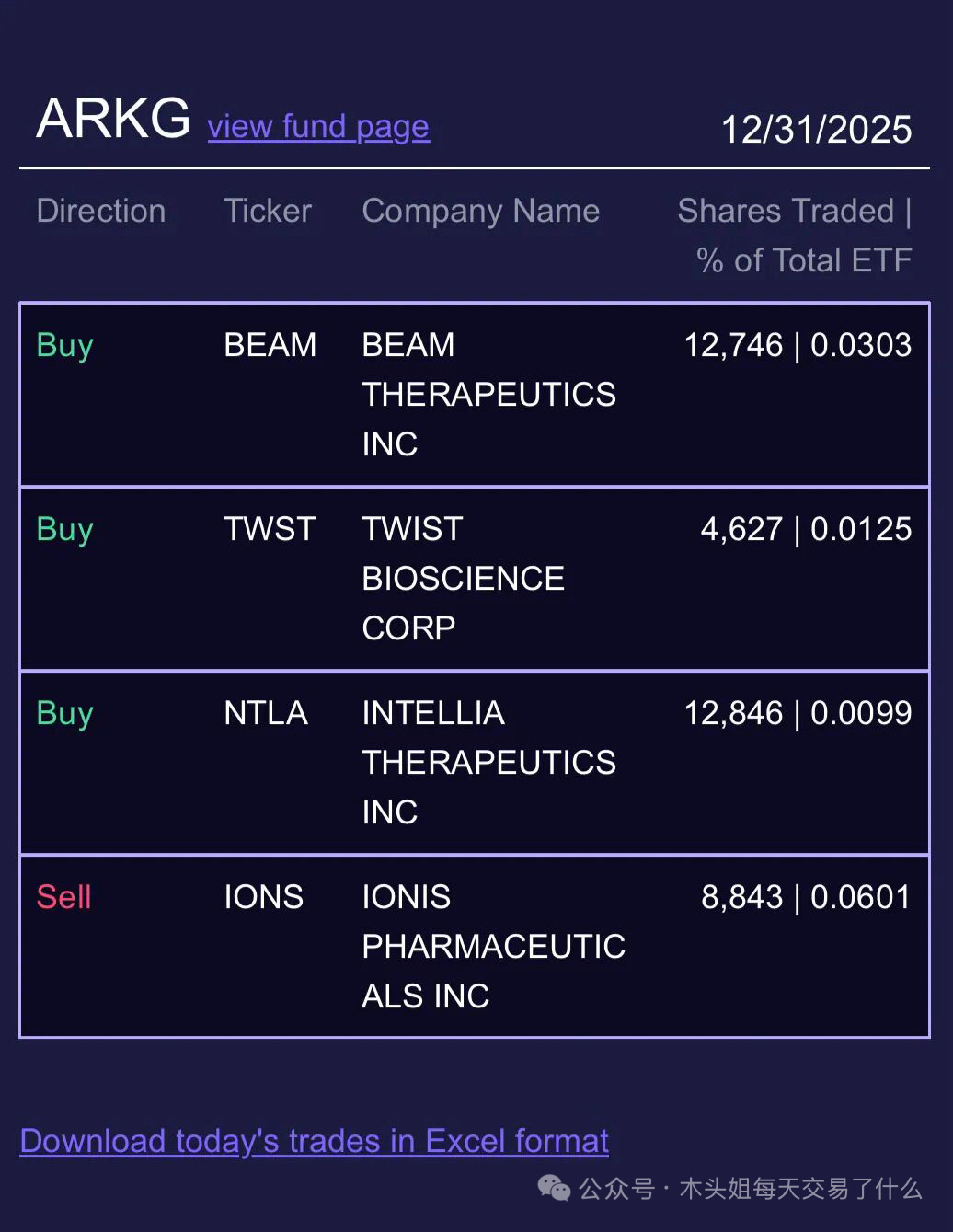 木头姐今天买入240万美元BEAM、100万美元TWST、80万美元NTLA这几天木头姐一直有加仓,这是继续加大筹码的赶脚吗?、30万美元KDK。