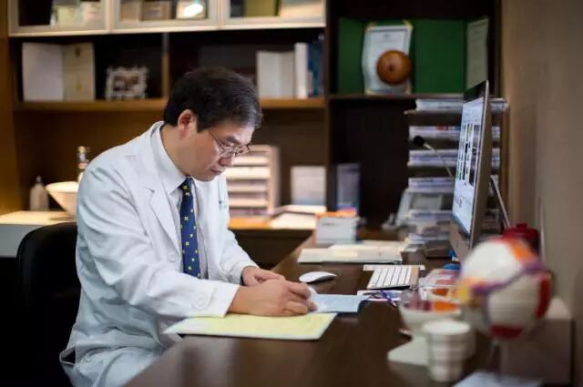 林顺潮正在认真查看病人病历