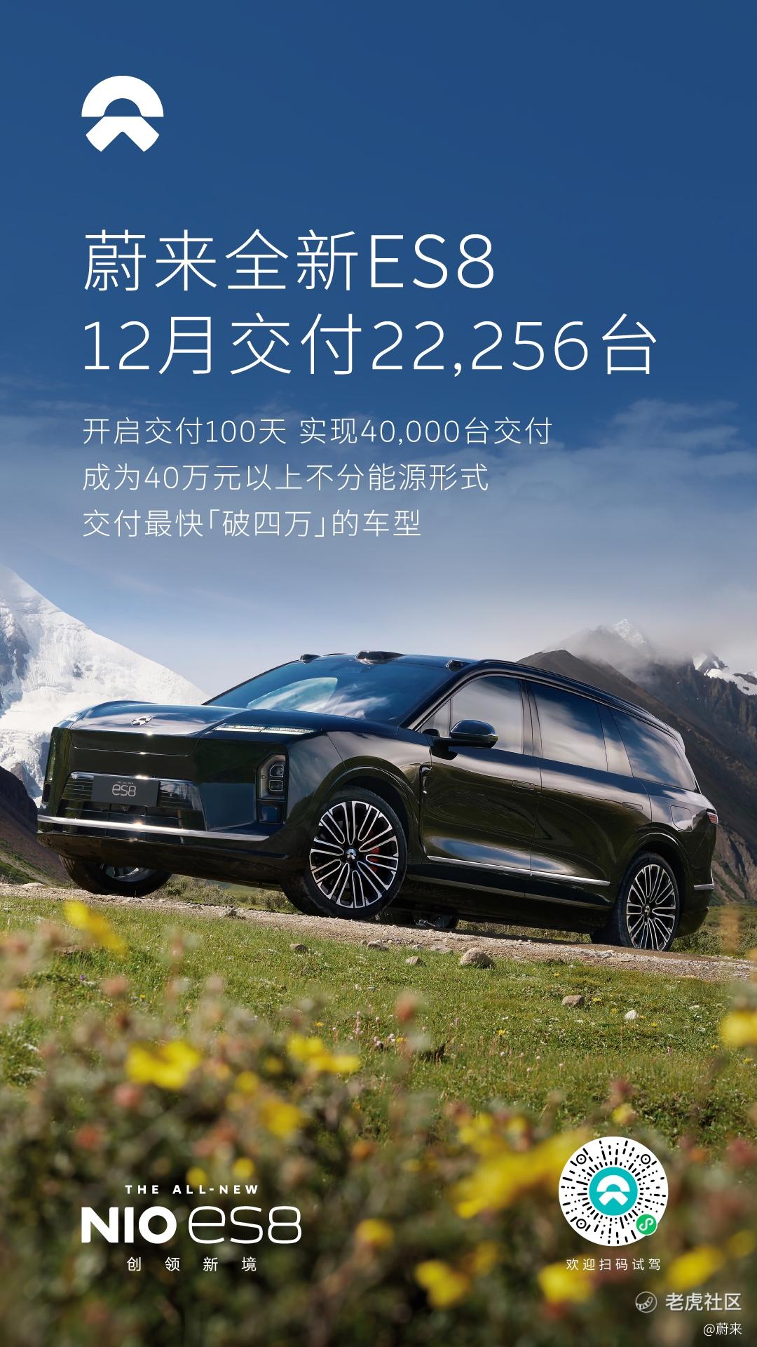 2025年12月,全新ES8交付新车22,256台,刷新40万元以上车型单月交付量纪录。自2025年9月21日开启交付以来,全新ES8持续按下加速键,交付仅41天即达成「破万」里程碑,29天后达成交付两万台,第三个「万台」交付只用了19天,第四个「万台」只用了11天,成为40万元以上不分能源形式,交付最快「破四万」的车型。纯电大三排SUV的黄金时代正在到来。