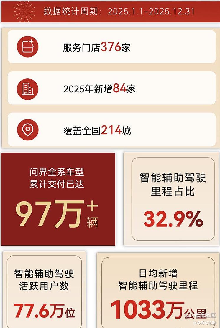 赛力斯问界系列车型25年12月销量57778台,创下历史新高。一季度大概是什么预期?到目前为止问界M7累计交付6.5万台左右,前期大定大概在12万台左右,若把后驱版也放开预定,光问界M7一款车,一季度的留存定单就能超8万台了,加上M9和M8\M5,一季度累计交付量超10万台是大概率能完成的目标。