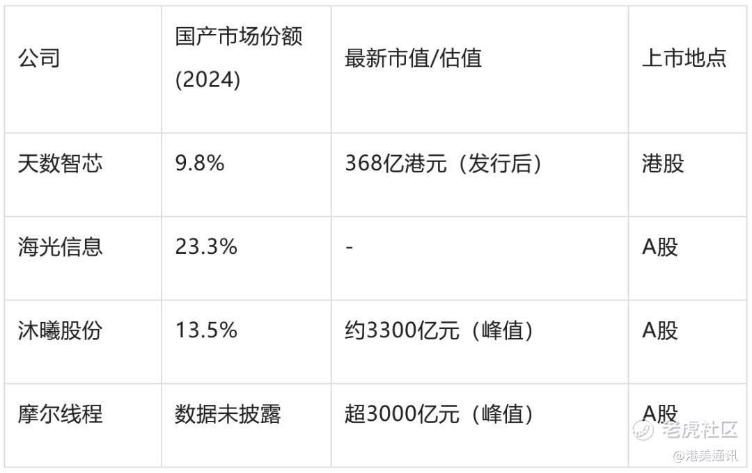 主要竞争对手包括海光信息(国产市场份额23.3%)、沐曦股份(13.5%)等。