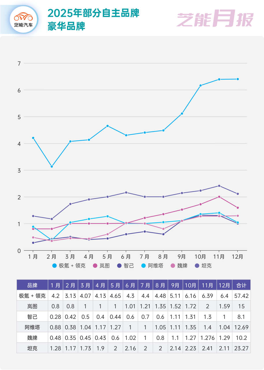 ● 坦克品牌 12 月销量 21129 辆,2025 年全年销量 232713 辆。