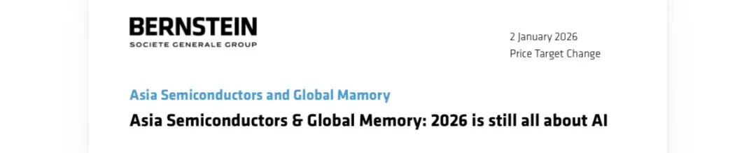 Bernstein于2026年首个交易日发布亚洲半导体与全球存储展望,核心结论明确:2026年投资主线依然是AI。