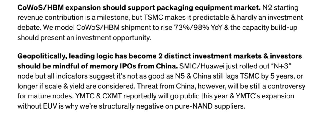 报告指出,AI加速器(XPU)需求强劲,CoWoS先进封装、HBM存储及逻辑晶圆产能持续紧张,预计全年供需偏紧格局难以根本缓解。