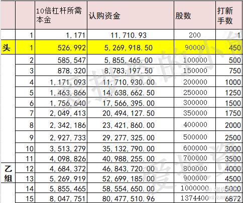 乙头需要认购资金527万,乙组的各档融资所需要的本金还有融资金额对应如下表: