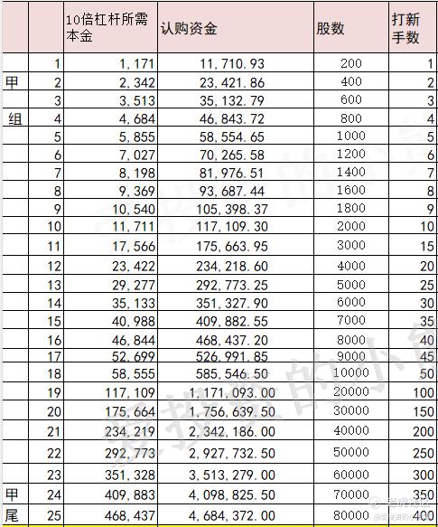 甲组的各档融资所需要的本金还有融资金额对应如下表: