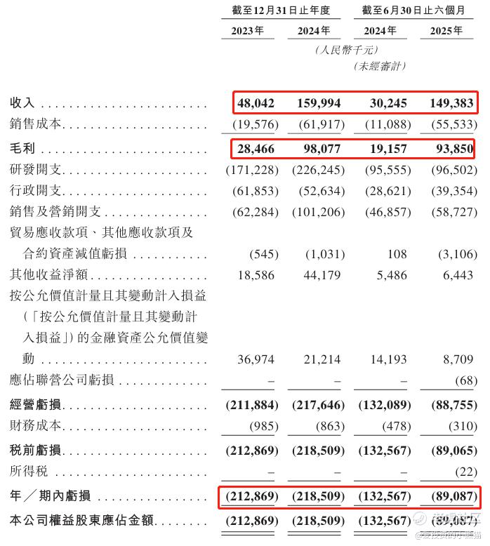 净利分别约为人民币-2.13亿、-2.19亿、-1.33亿、-0.89亿,2025年前6月同比-32.80%;