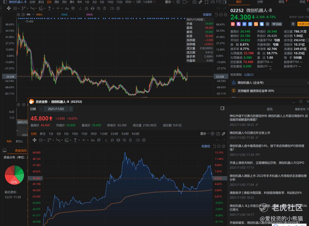 精锋医疗这个票发行市值167.65亿港元,H股市值139.93亿港元,募资总额11.99亿港元,基本上也能确定就是市场化发了,就看有没有机构二级愿意为他买单了。说起手术机器人,这个票在市场上并不稀缺,龙头应该还是微创机器人,微创机器人现在250亿的市值,金峰医疗发167亿,估值应该挺难超越龙头老大哥微创机器人,微创机器人当年这个票在牛市末期来的,上市开盘都破发,不过好在上市之后拉起来了,现在的这种行情之下,应该不至于走成这样吧?相信这个票那么亮眼的一堆明星基石 拿的那些锚定国配应该不至于砸盘吧?二级市场这块也会护住他吧?