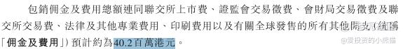 然后这个票招股书上按发售价的43.24港元计算,公开的上市所有开支总额约为4020万港元,募资额约11.99亿港元,占比约3.35%,开支相比募资额算是比较少了。
