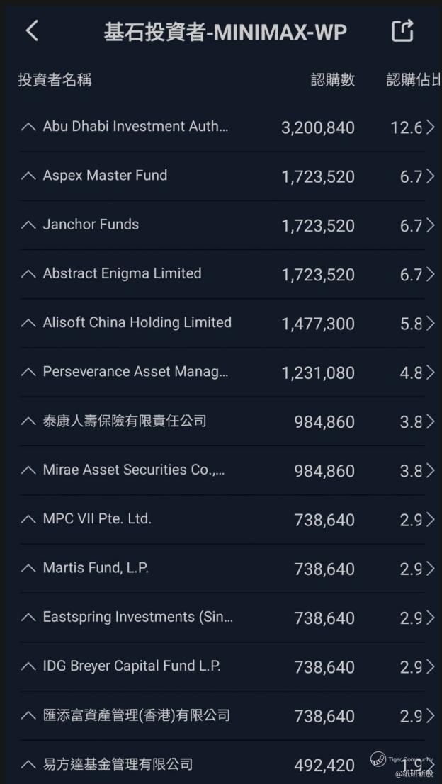 14名,占比67.88%,占比很高,包括外资明星基石ADIA(阿布扎比主权基金)、阿里巴巴、IDG、易方达,顶级机构打满,强