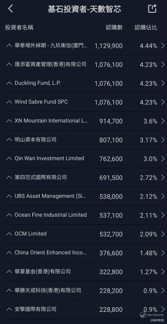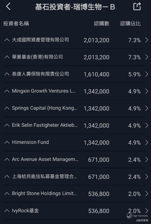 共有19间,认购总占比43.01%,华泰自己认购了最大份额,应该不会连自己都一齐割? 其他外资明星基石只有UBS,其他都不太知名;国内较强基石包括华夏、汇添富