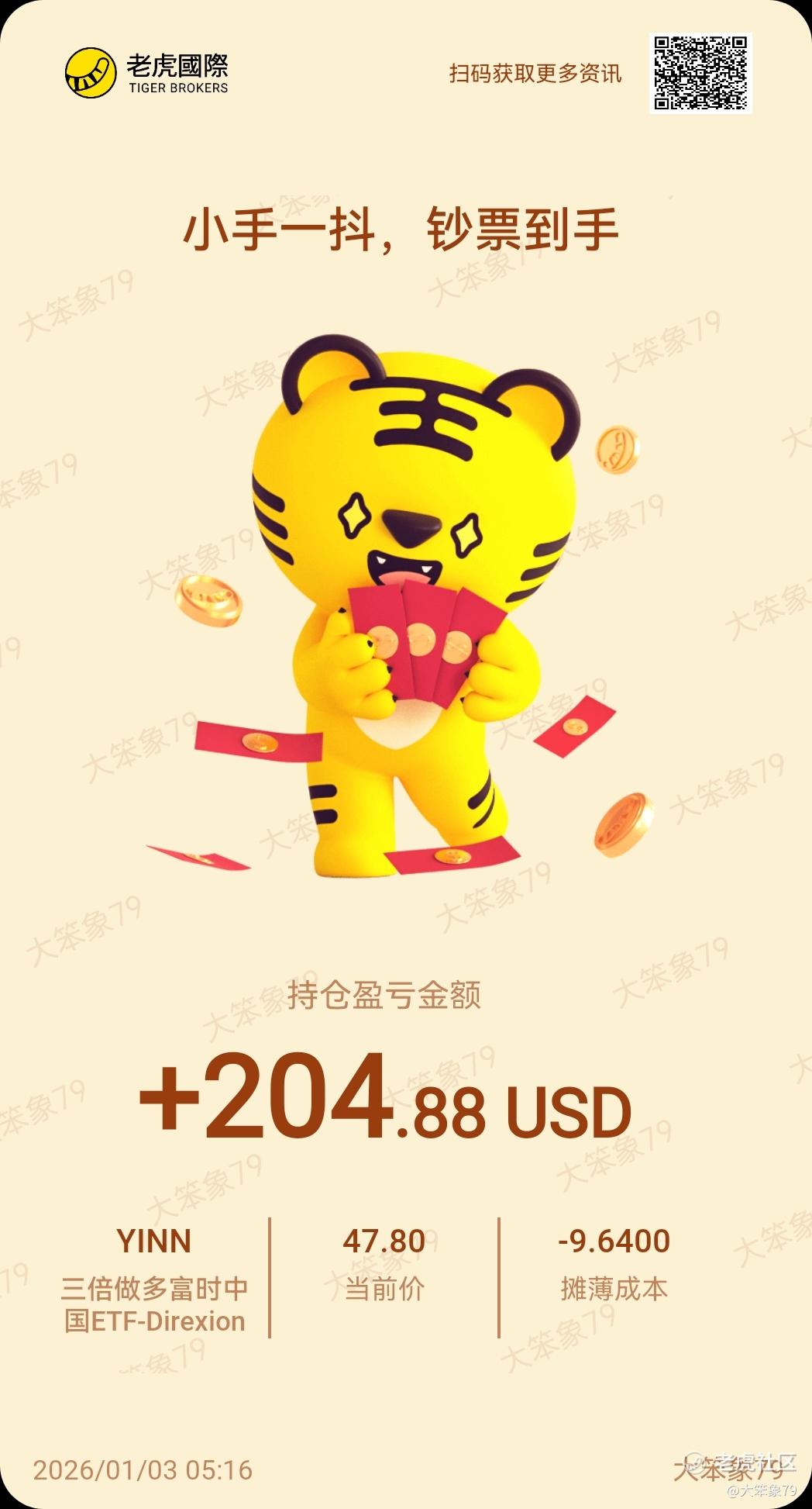 $三倍做多富时中国ETF-Direxion(YINN)$ 哈哈哈,新年第一单,总算获利了结,被套的感觉是真的很难受,所以才一盈利就跑。。。到底要怎样才能做到截断亏损让利润奔跑呢???