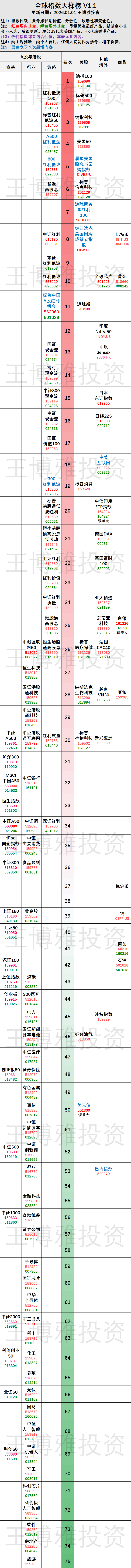 我一般重点观察前30的指数,尤其是排名前10的资产类别。