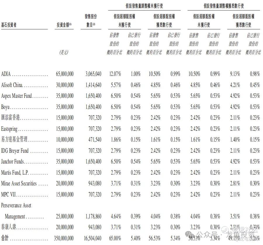 再看看基石阵容:包括阿布扎比、阿里、博裕资本、IDG、泰康人寿等14倍知名机构参与申购3.5亿美元,约合27.24亿港元,按上限定价,占比65%,基石禁售期6个月;值得一提的是本次基石中有多家现有股东继续通过基石锁定份额,说明大佬们继续看好公司的潜力。