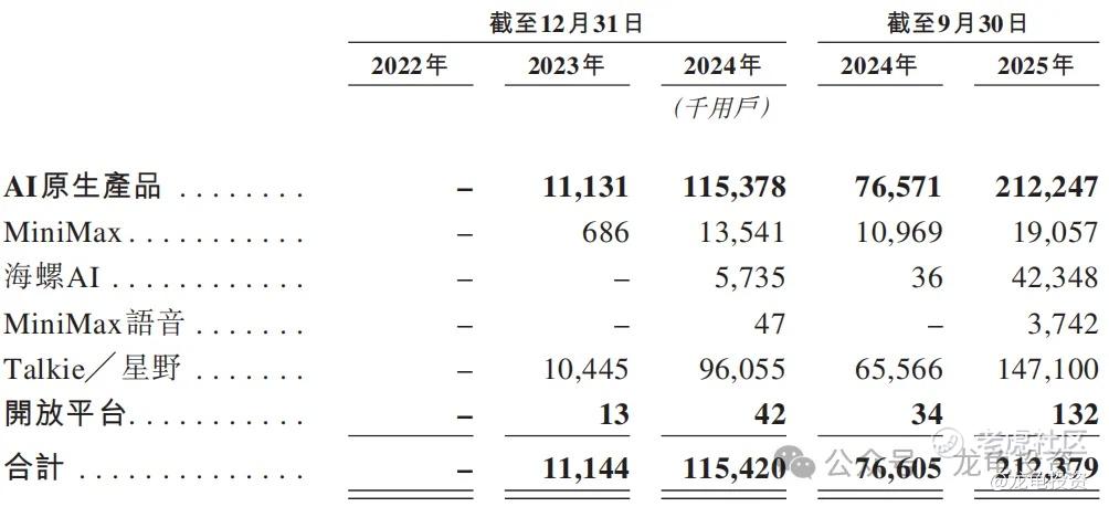 MiniMax语音:先进的语音生成工具,同样25年才产生收益 ,25年9月底营收105万美元,用户数24年4.7万人,25年9月底374.2万人,AI全家桶里面全部保持高速增长。