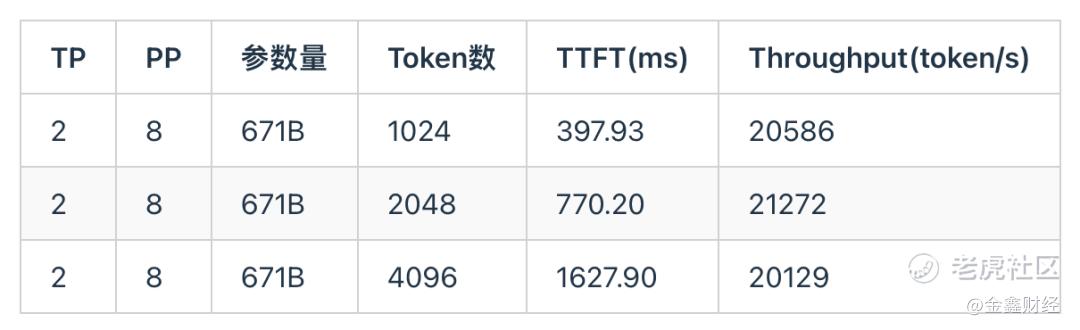 $天数智芯(09903)$ $英伟达(NVDA)$ 别只盯着纸面算力!看看评测和英伟达对比,天数智芯用PCIE Switch把16卡串成高吞吐集群,PP并行通信占比<1%,DeepSeek R1 671B实测TTFT比A800还低。 测试了英伟达A800在DeepSeek R1 671B Prefill场景下,随着输入Token个数增大,TTFT和吞吐的实测结果,由于该芯片的互联带宽较低,因此采用较大的PP能够缓解通信的大小,充分发挥芯片的硬件资源,降低延迟,提高吞吐,其 TTFT 显著低于 NVIDIA A800,同时整体吞吐性能也优于 A800,国内顶尖大模型都在测评天数,牛逼了这波